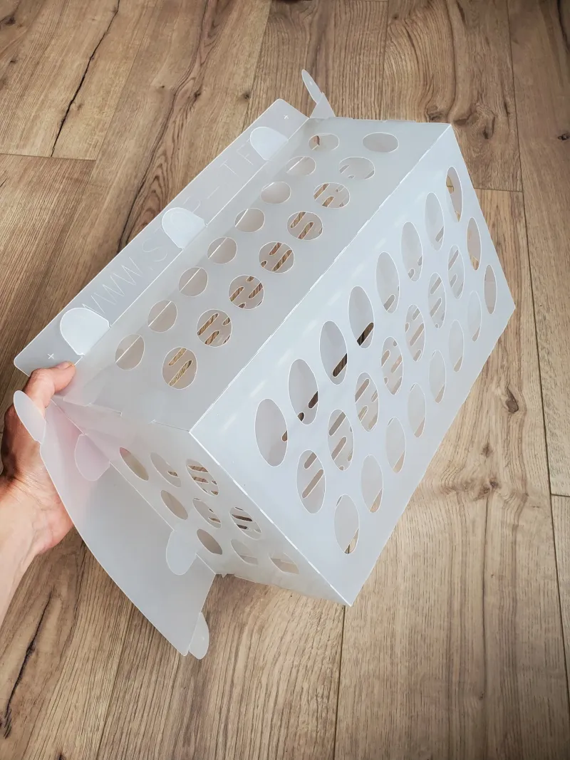 - Double paroi transparente : la paroi extérieure permet aux abeilles de sortir facilement, tandis que la paroi intérieure, avec des ouvertures plus petites, empêche l'entrée des frelons.