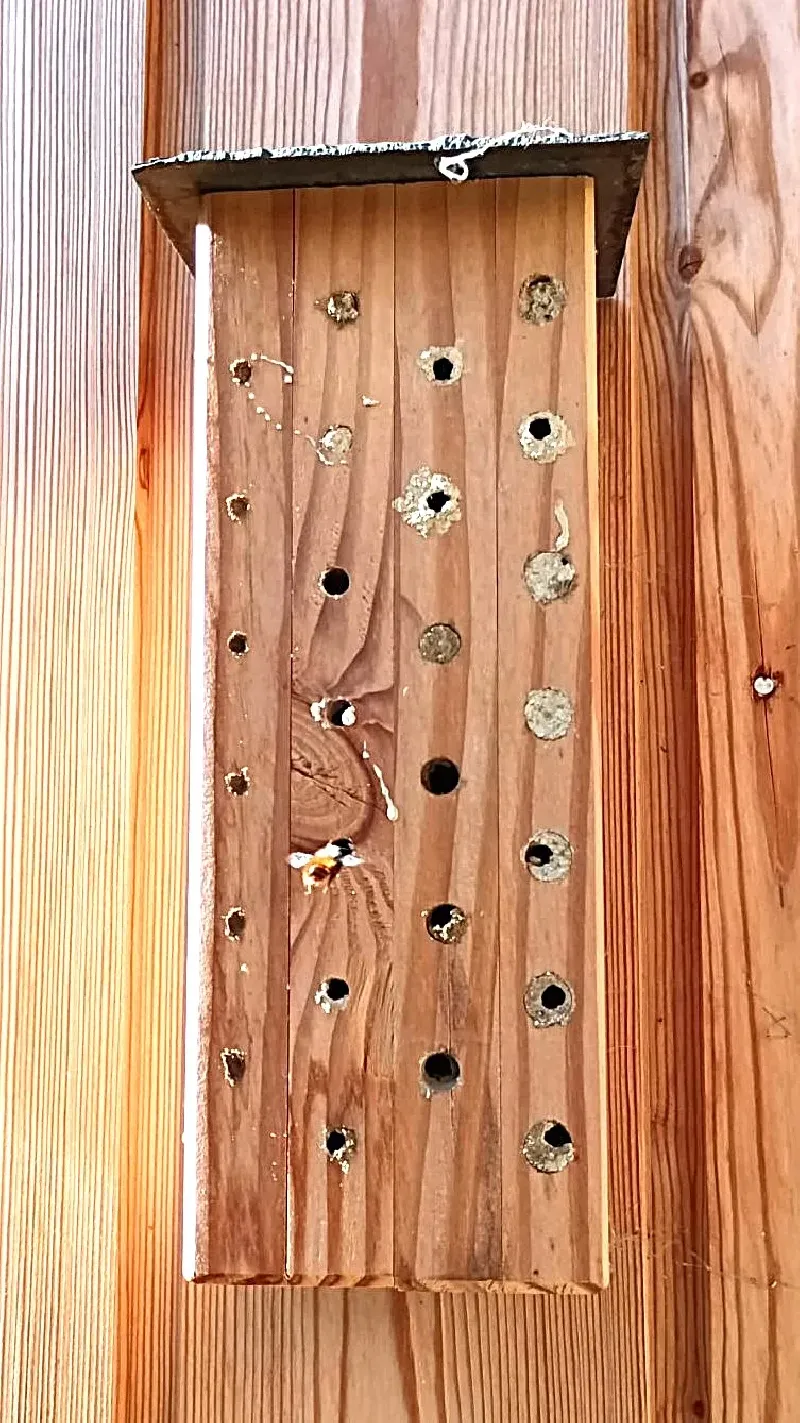 Le nichoir pour guêpes et abeilles solitaires ne nécessite aucune protection ni aucun traitement du bois (ce qui aurait un effet néfaste pour ses occupants).