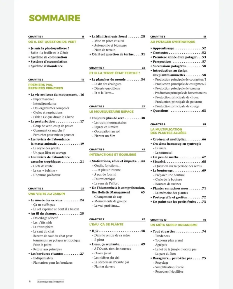 Plutôt que de lutter contre la nature, la syntropie propose de coopérer avec elle : associer les plantes, imiter la forêt, nourrir le sol, accueillir la biodiversité… Ce livre détaille pas à pas les gestes et stratégies pour transformer son jardin, qu’il s’agisse d’un petit potager familial ou d’un verger plus ambitieux.