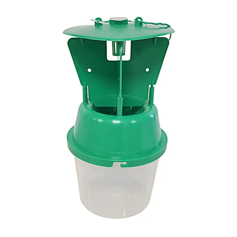 Le piège ne fonctionne qu’avec une capsule de phéromone adaptée à l’espèce recherchée (non fournie avec le piège).