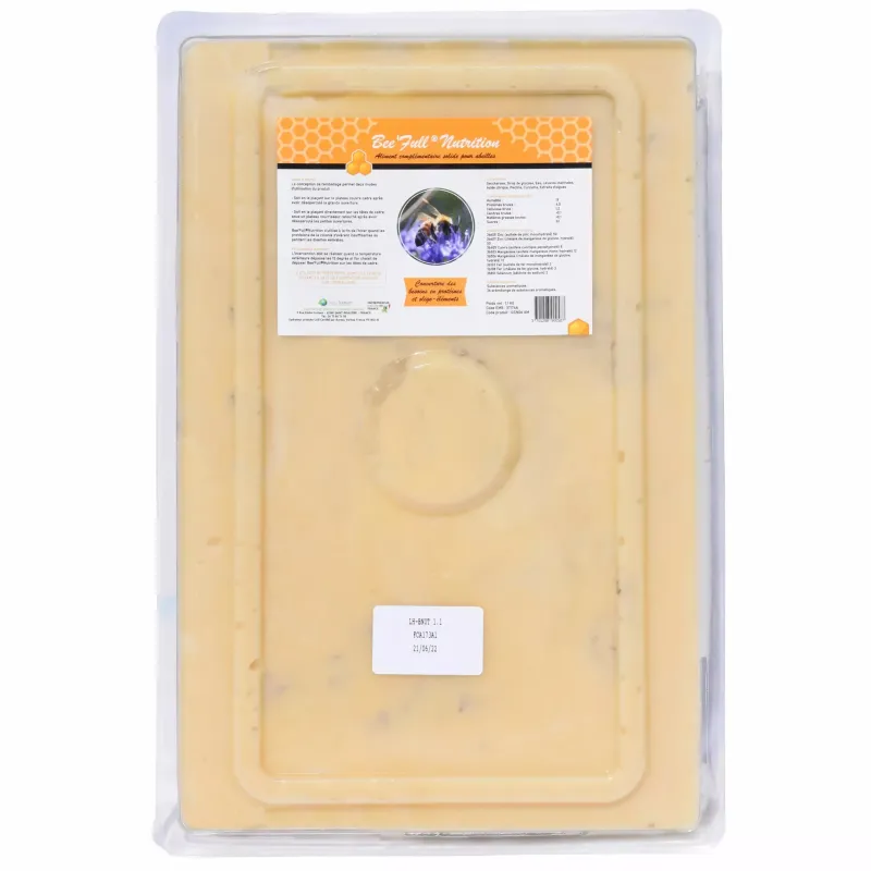 Conditionnement : 1 barre de 1,1 kg pour compléter une alimentation normale de la colonie pendant 1 mois.
