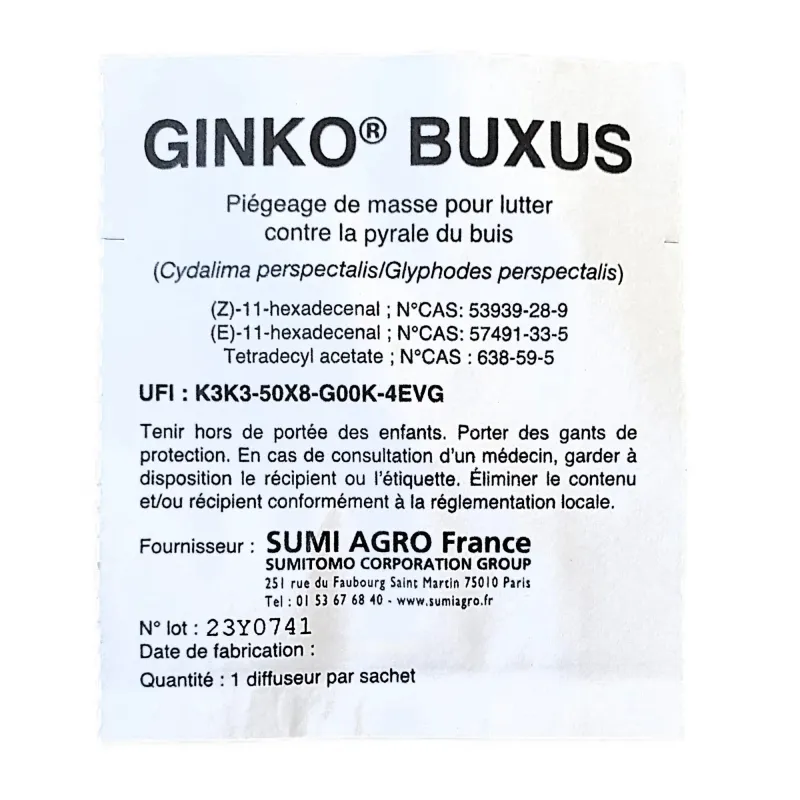 La phéromone GINKO BUXUS se conserve 5 ans au réfrigérateur à compter de la date de fabrication indiquée sur le sachet.