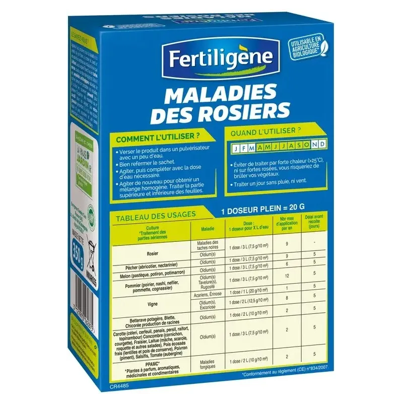 Ce produit est indiqué pour lutter contre les tâches noires et l’oïdium, deux problèmes majeurs sur rosier.